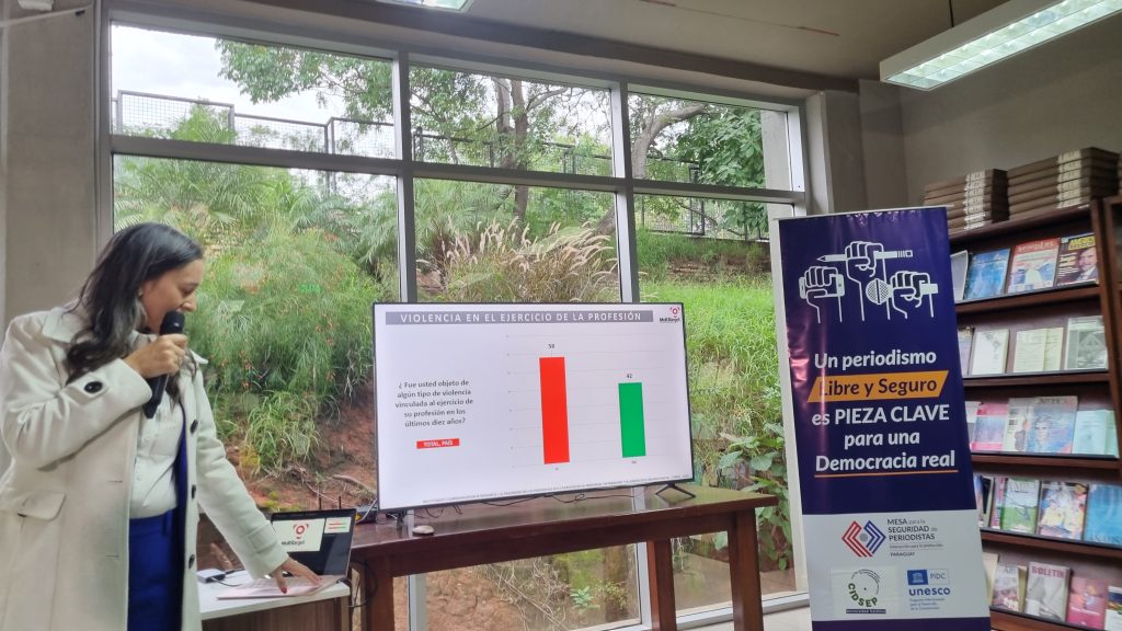 Casi un 60% periodistas que ejercen la profesión han sido objeto de algún tipo de violencia en el último decenio en Paraguay, y en el caso de periodistas mujeres, la cifra ronda el 70%. Asimismo, un 37% de profesionales considera que “no existe seguridad para el ejercicio de la profesión” en el país, y un 39% cree que la seguridad para hacer periodismo es “baja”, mientras que un 51% de comunicadores señalan haber recurrido a la “autocensura” cuando fueron objeto…